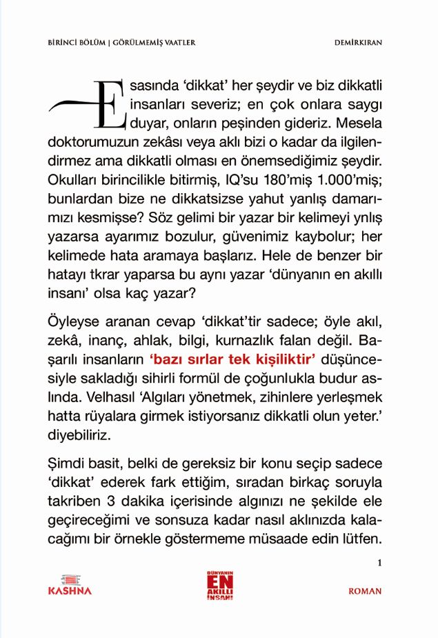 Bazı sırlar tek kişiliktir. Mesela doktorumuzun zekâsı veya aklı bizi o kadar da ilgilendirmez ama dikkatli olması en önemsediğimiz şeydir. Velhasıl algıları yönetmek zihinlere yerleşmek hatta rüyalara girmek istiyorsanız dikkatli olun yeter. Bazı sırlar tek kişiliktir erdal demirkıran esasında dikkat her şeydir ve biz dikkatli insanları severiz. Bazı sırlar tek kişiliktir kısa özet.