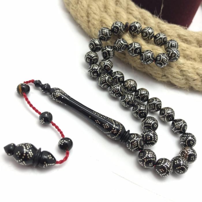 Kazaz püsküllü madagaskar akik kaplumbağa sırtı tesbih tespih.